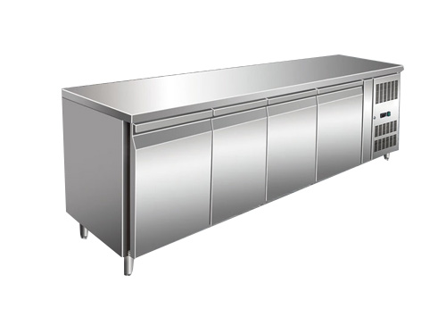 箱内可放标准GN1/1或GN 2/1份数盆。 采用进口恩布拉科、丹佛斯、扎努西压缩机,纯铜管蒸发器、冷凝器,快速制冷,高效换热,噪音低。 进口意大利DIXELL微电脑温控器,性能稳定,温度控制精度在1±0.1° 线组采用进口JST端子插接,接触可靠,操作简单,便于维修及更换。 欧式自动回归铰链,多气囊可拆卸门封条,密封效果好,便于清洁。 箱体整体发泡,密度38kg/m?不收缩,不变形,保温效果好,符合欧美环保标准。 内外箱采用优质不锈钢材质,有效保证食品卫生安全,同时承重、抗击能力更强。 欧式不锈钢折边拉手,开关门方便易于清洁。 两侧门框均按出口标准埋有加热丝,防止箱口凝露影响使用和美观。